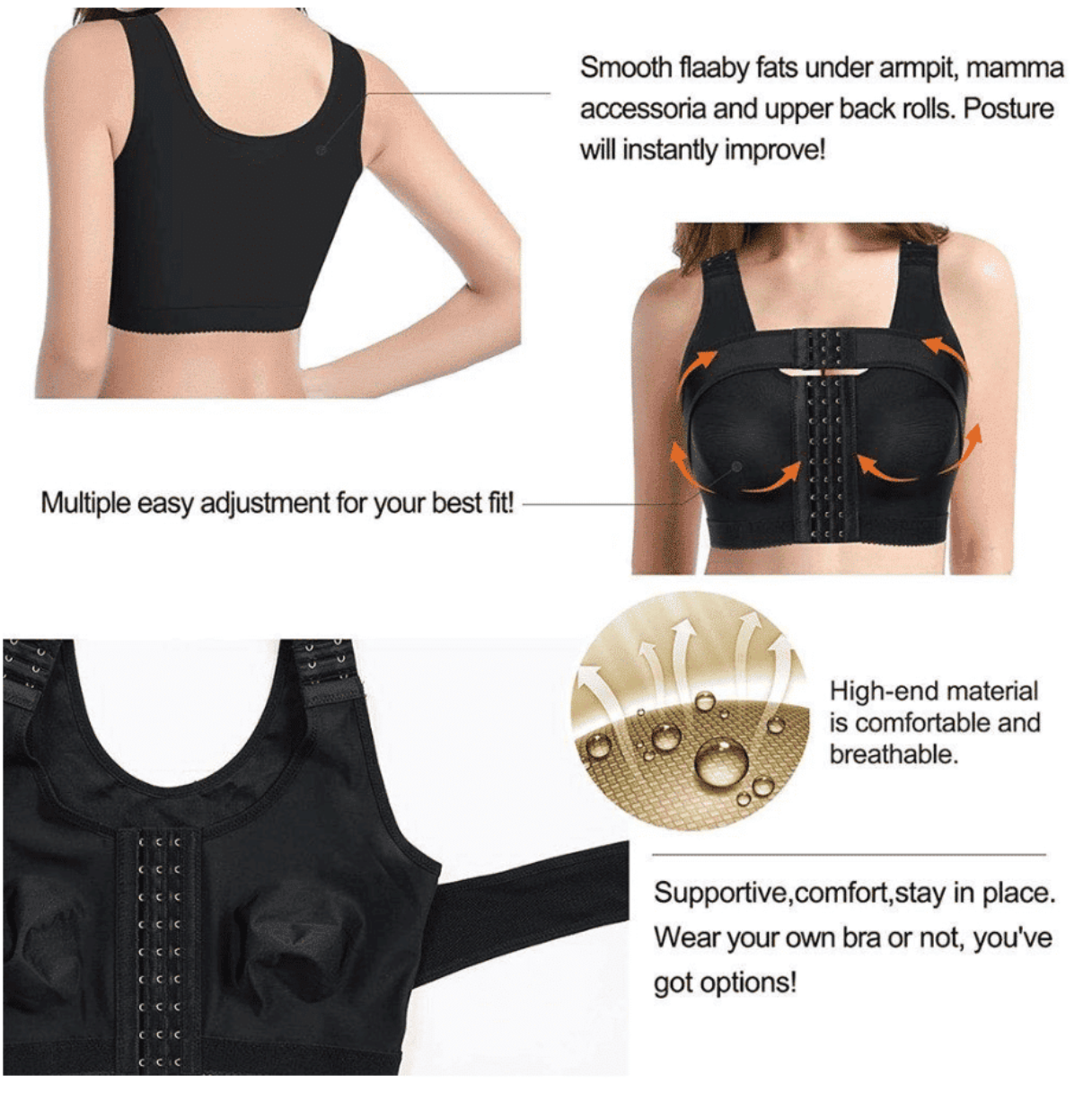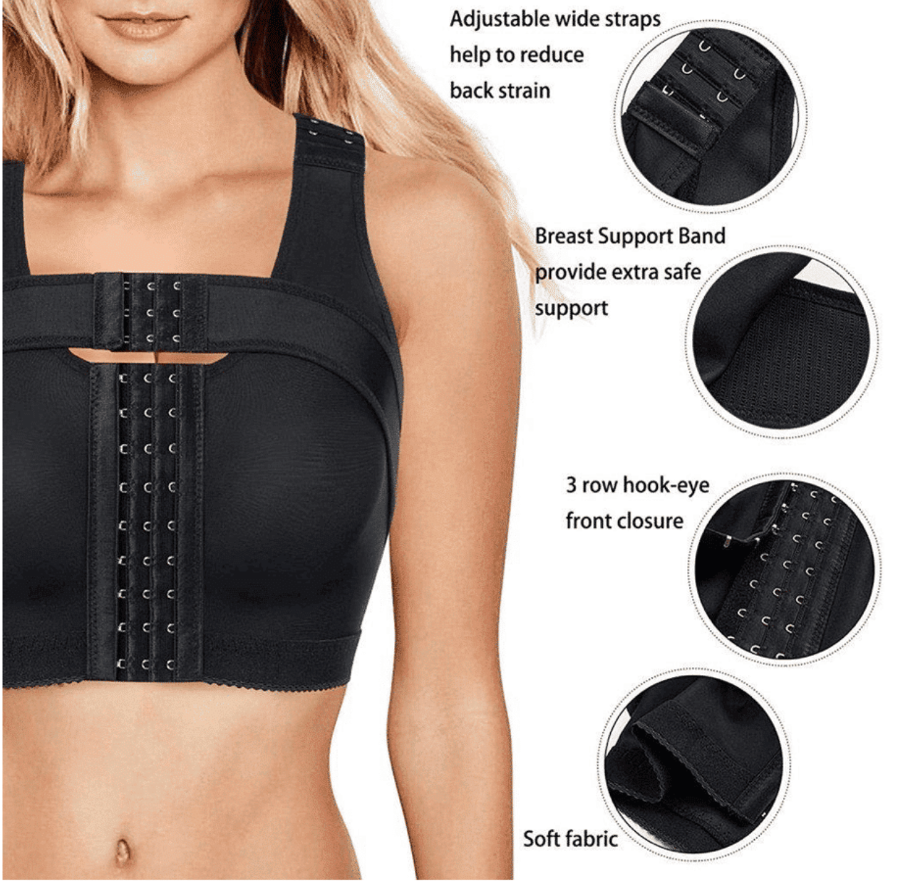 Vivian – Post-Operative or Sports Bra – Front Closure for Extra Chest Support